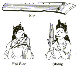 Música en China: atrajo a viajeros occidentales que visitaban ese país ansiosos de novedades. Los chinos diferenciaban las notas de la música; reservaban las primeras a los hombres ordinarios y las ultimas a hombres sabios.